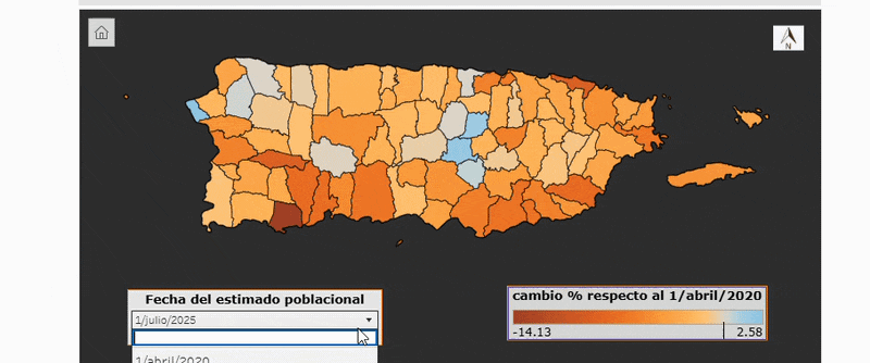 On Thursday, March 26, 2026, the United States Census Bureau released annual estimates of the total population at the municipal level. The estimates reference date is July 1 of each year of the current decade. Explore the visualization that summarizes the annual changes and the geographical distribution of the total population in the municipalities of Puerto Rico. Specifically, in relation to the base year or starting date of the decade, which is April 1, 2020.